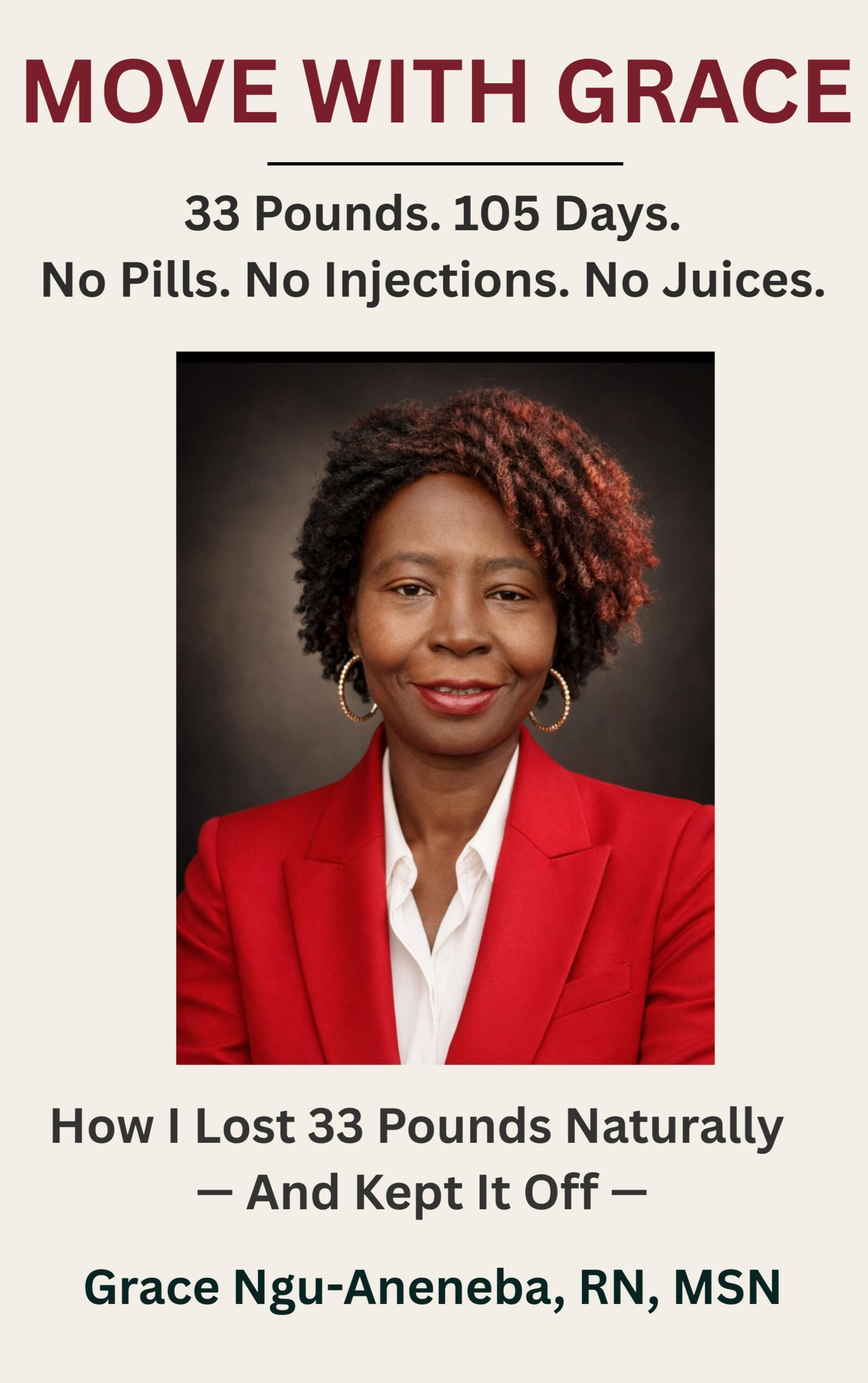 Grace Ngu-Aneneba, RN, MSN is a nurse, wellness mentor, and founder of Move With Grace. At age 59, she lost 33 pounds naturally in 105 days—without pills, injections, or crash dieting—and has maintained her results through discipline, faith, and sustainable daily habits.Drawing from both her medical background and lived experience, Grace empowers women—especially those over 40—to reclaim their health with dignity, consistency, and grace. Her work is grounded in the belief that the body is a gift to be honored, not punished, and that lasting change comes from simple, faithful stewardship practiced daily.